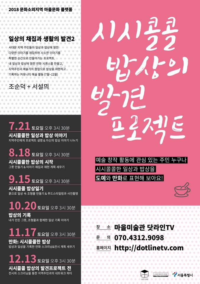 | <10.20 시시콜콜 밥상일기: 흙으로 일상 속 조형물 만들기 & 푸드스타일링과 사진촬영> 일상의 채집과 생활의 발견2_시시콜콜 밥상의 발견 프로젝트 (0) | 2018.10.19 |